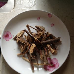 把五指毛桃和鸡姜片一起放入沙煲中武火煲开在该小火煲两小时