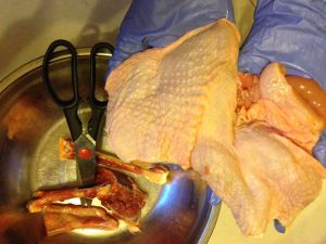 鸡腿去骨,去骨的时候用剪刀比较方便,
