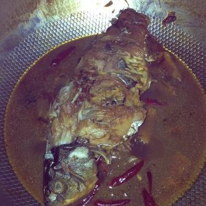 将鱼表面水分吸干。放入锅内两边煎成金黄色。