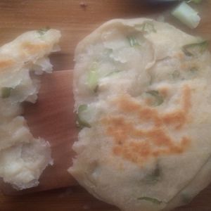 将面团擀成圆形,没用完的油滴几滴在锅中,面饼放入锅中煎熟即可