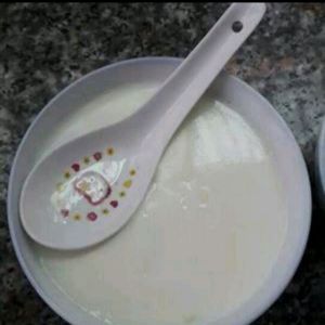 把牛奶煮到冒泡泡,然后放置5-7分钟,待冷却到70-80℃时最佳,摇晃牛奶〔说是为了防止有奶皮子,要我说直接吃了奶皮儿不是更好么?〕然后倒入姜汁碗中,一边倒一边搅拌,然后静置放凉,待到双皮奶状时开吃!