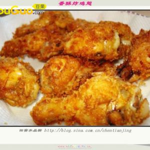 鸡蛋搅拌成液体,把粘好炸鸡粉的鸡翅均匀的裹上一层蛋液。然后再粘上一层面包糠。