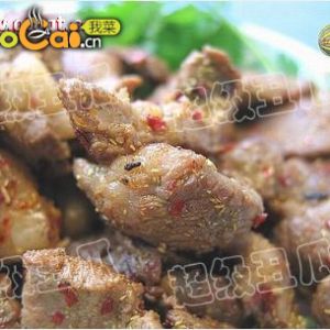开始依次加盐,辣椒面,孜然。翻炒几下,就可以出锅了。千万别炒时间太长,否则肉老了,就没法吃了。