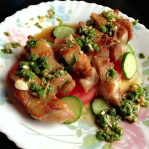 当当当当!~~~成品!~~巨巨巨好吃~~小汁儿配的一点也不腻,鸡肉切开之后鲜嫩多汁~真的是一级棒得丝内!~~~