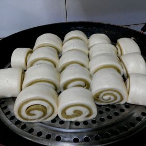 摆入蒸笼内。醒面20分钟。开火蒸,冷水入锅蒸。15-20分钟关火,闷10分钟。中间不可以掀开锅盖,以免漏气了不好看。