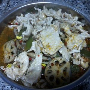 开小火,迅速用筷子将肉片一片一片放进锅里,记住不要一下把肉放进去,那样会成一团的。把肉放进后,迅速开大火,将肉煮熟,如果刚开始就用大火,那么先放进去的肉已经老了