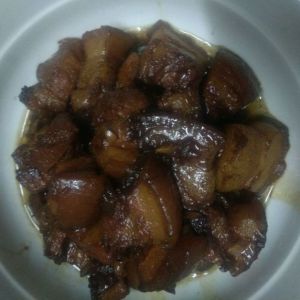 锅内放油,油热放入八角,香叶,桂皮,,翻炒出香味,放入葱段和姜片,然后再放入五花肉翻炒,烹入料酒,白糖,生抽,老抽,盐,加入热水,炖1个小时,放入少许味精出锅