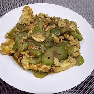 鸡蛋盛出,少许油,倒入丝瓜,翻炒5成熟,加入鸡蛋,调味料