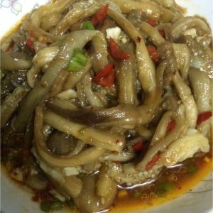 将蒸熟的茄子手撕成入图所示,撕的细条容易入味