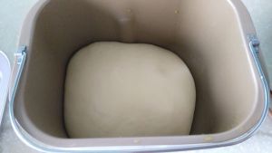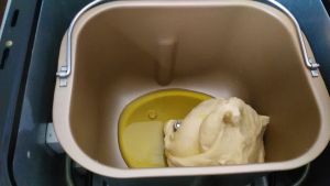 将面团放入面包桶,启动第一个和面程序15分钟。