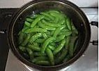 锅中水烧开,放些盐,滴2滴色拉油,放甜豆,焯一下