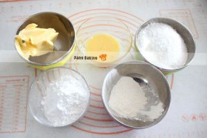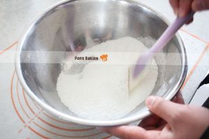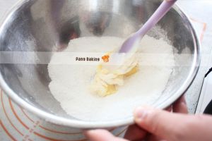 将椰蓉、糖粉、低粉倒入一个干净的大盆中,混合拌匀