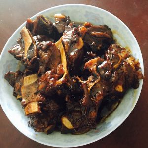 乘出锅,家里有芝麻的可以最后在排骨上撒些芝麻点缀一下。