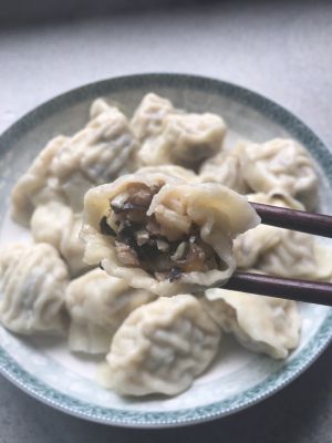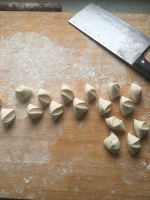 皮薄馅大胖饺子包好,开水下锅,中间打入两次凉水,饺子都飘起来鼓鼓的就熟了!