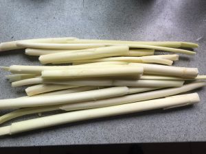 蒲菜去掉外面老的部分,留嫩芯,洗净。