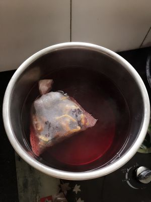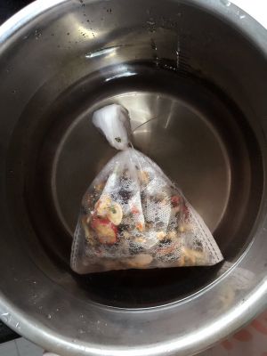 锅里倒入半锅水,大约3升左右(根据自己喜欢酸味的浓稠度适量即可),放入药包泡制半小时