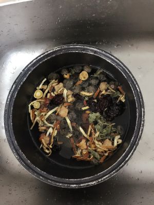 大火烧开,转小火熬制半小时即可关火,中途翻动一下药包哦