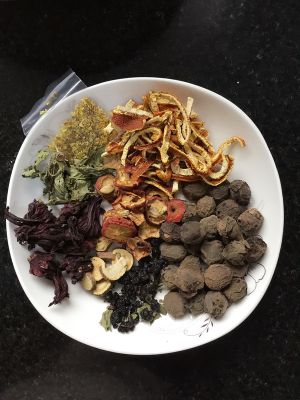 准备好乌梅干,山楂,甘草,橙皮,洛神花,桑葚干,薄荷叶,桂花