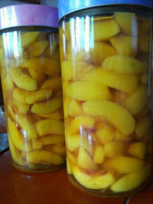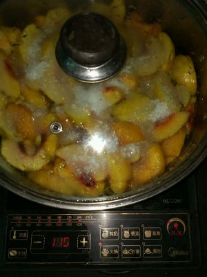 玻璃瓶用开水烫一下,将煮好的黄桃趁热装瓶,盖好盖子。放凉后,放冰箱。尽快食用。