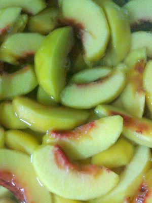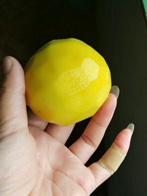 新鲜黄桃去皮,千万要小心,别像我一样伤了手指
