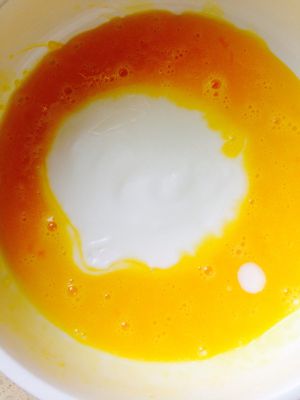 蛋黄打匀,加入20克糖,搅拌均匀。加入80克酸奶,搅拌均匀