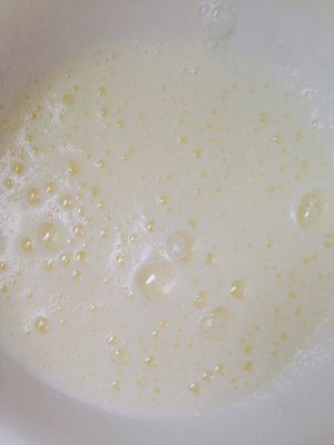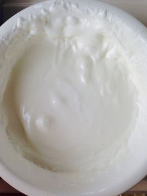 蛋白打发至起泡,第一次加入剩下的糖的1/3