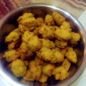 油热了就可以下锅了 (要用不粘锅哦~我一般都是把豆腐攥在手里,用勺子整成小小的一团)