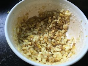 几根葱,一个苹果和梨削皮,有榨汁机的榨成汁,没有就切粒。我就是没榨汁机