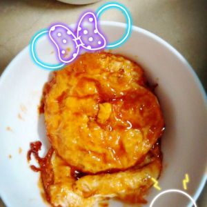放入煎好的鸡蛋 让鸡蛋和汁完美的融合 好了 可以出锅啦 颜色很诱人吧 这也算是黑暗料理吧 哈哈
