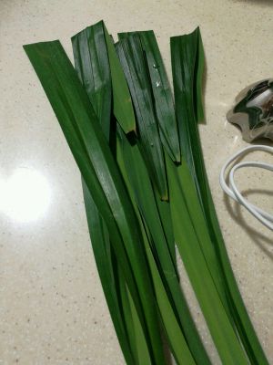 用料理机把班兰叶磨碎,加入尽量少的水,用纱布过滤出绿色汁液待用