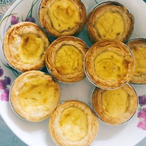蛋挞皮提前取出解冻,烤盘上放油纸,再整齐排好蛋挞底。