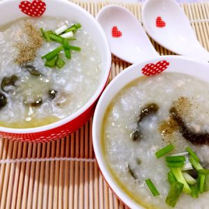 出锅,撒上白胡椒,葱花,滴上香油,一碗色香味俱全的皮蛋瘦肉粥就可以开始享用了