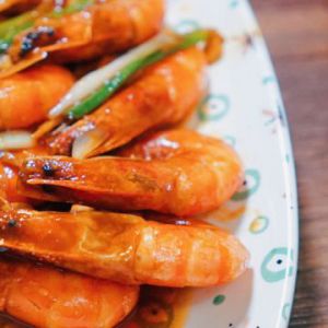 倒入煎炸好的虾,再次翻炒,炒的时候可以轻压虾头挤出虾膏,然后加入半碗清水