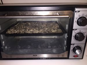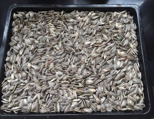 装满一烤盘,我用的32L的烤箱,瓜子还挺多,瓜子多少和烤的时间相应,瓜子多烤制时间就长,瓜子少,烤制时间就短。