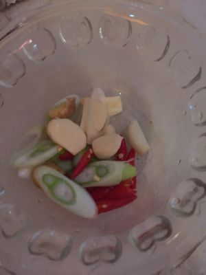 葱姜蒜切片,辣椒切圈。