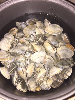 花蛤用水冲洗干净