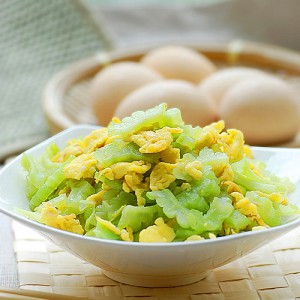 倒入苦瓜一起炒,两分钟左右时,加入调料,炒匀后起锅!