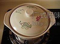 腊肠放入清水中浸泡五分钟,捞出切片,放入砂锅中,继续煮至全熟后拌匀;