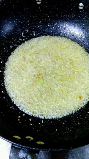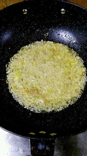 待葱头锅边略有焦黄放姜蒜末炸酥马上捞起备用,否则会焦掉