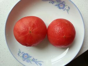 西红柿洗净,水烧开,西红柿放开水里翻几下就好了,把皮剥去。