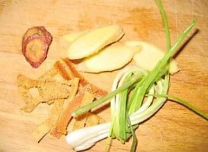 陈皮用冷水泡软后,去除白色内瓤,切成丝