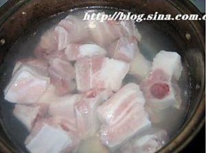 排骨洗净,焯水,冲洗浮沫,沥干水