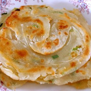 用手掌压扁再用擀面杖擀成圆形,平底锅放油放入擀好的饼煎至两面金黄即可