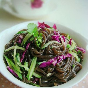 蒜泥加盐,生抽,醋,芝麻拌匀(喜欢辣的可以放些辣椒油)。浇在蕨根粉和黄瓜上,拌匀即可