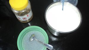 酸奶我用的是自己做的,纯牛奶加益生菌发酵粉