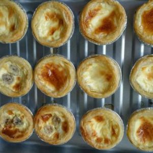 另附10个蛋挞的食材用量:冷冻蛋挞皮10个、牛奶75g、蛋黄2个、淡奶油110g、细砂糖15g、低筋面粉8g。做法同上。