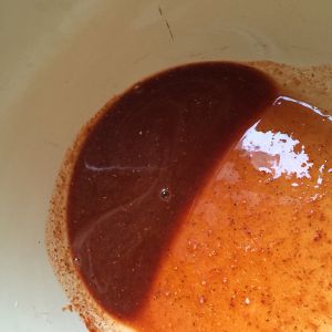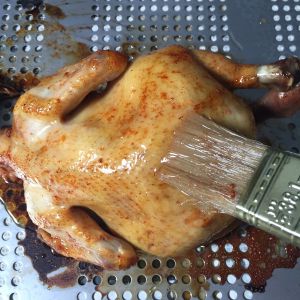 涂在鸡的表面,肚里也可以倒一些进去,按摩片刻,放入保鲜袋密封冷藏一晚,这样做省力又干净,不会弄的到处是汁水