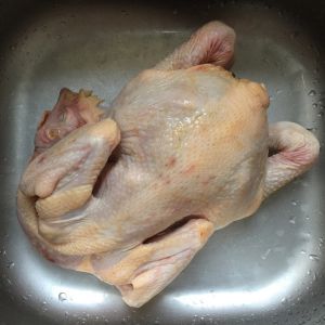 超市买来的已经处理干净的柴鸡,洗净表面扎眼,以便入味