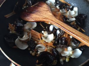 再放入黑木耳翻炒,然后放入鲜百合炒