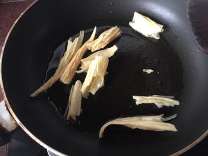 锅里热少许油炸腐竹